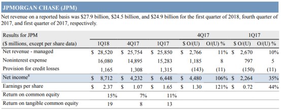 来源:摩根大通2018年第一季度财务快报