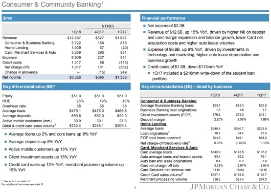 来源:摩根大通2018年第一季度财报PPT