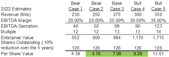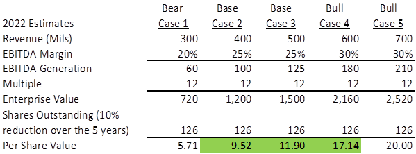 度假租赁业务不需要浪费太多时间,因为它产生的收入最少,而且据估计是增长最慢的。使用类似上面的分析,保守公允价值是每股2-3美元。