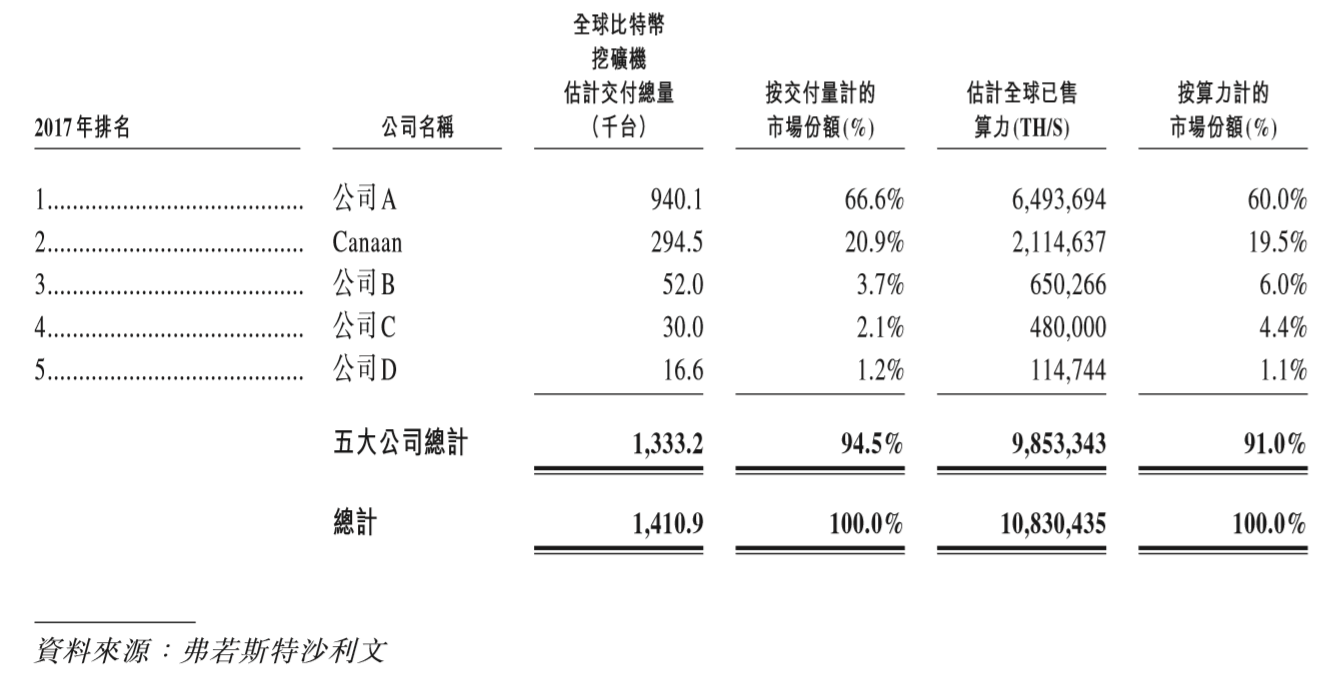 目前,全球比特币挖矿机市场相对集中于几家大型竞争对手,大部分领先参与者均为中国公司。根据弗若斯特沙利文,按2017年比特币矿机的出货量以及占总计算力份额计,在比特币挖矿机无晶圆ASIC芯片设计公司当中,公司在全球及中国排名第二位。前三分别为比特大陆、嘉楠耘智和亿邦科技,CR3超9成,市场集中度高,行业处于寡头竞争格局。虽然说是寡头竞争,但下表能看到,嘉楠与行业第一的比特大陆仍存在不小差距。那嘉楠是否存在逆袭的机会?从下游的竞争格局来看,有点难度。