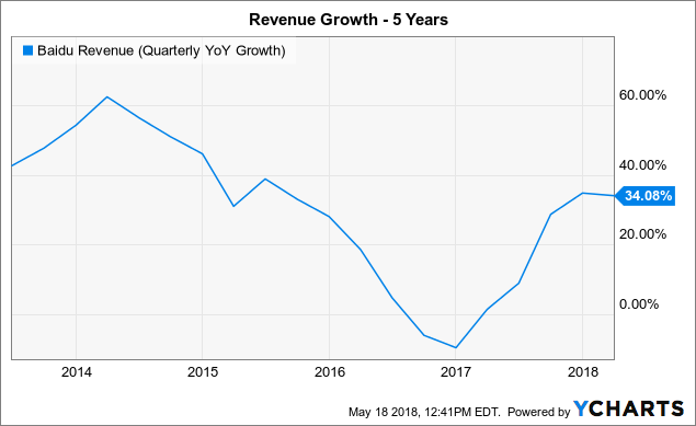 来源:YCHARTS 百度收入数据(季度同比增长)