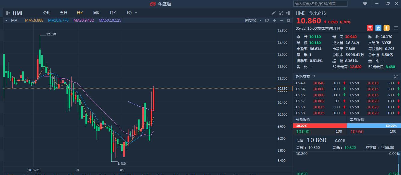 华米科技发布一季报以来,股价已经连续两天大涨,累计涨幅18%。