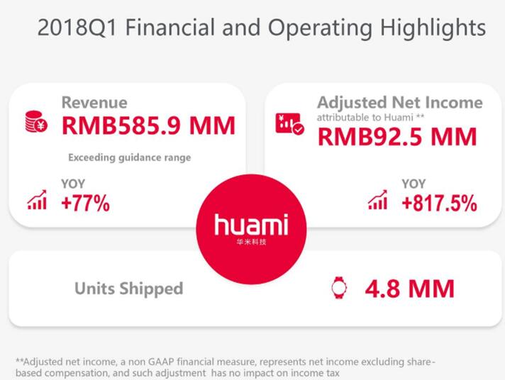 2018年第一季度,公司营收5.86亿元,同比增长77%;非美国通用会计准则(non-GAAP)下,归属净利润9250万元,同比增长8.17倍;毛利率25%,同比上升2.7个百分点;基本每股收益0.47元,去年同期为0.01元。一季度出货量48万台,同比增长50%。
