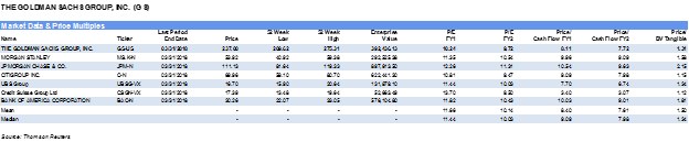 考虑到未来增长,笔者认为相较其他同行,高盛目前是被低估的。预计高盛未来股价会高于当前的237美元。高盛目前的远期市盈率为11.66,分析师预计的每股收益为23.76美元,照此计算,未来十二个月中,高盛的股价有望涨至270美元至280美元区间。