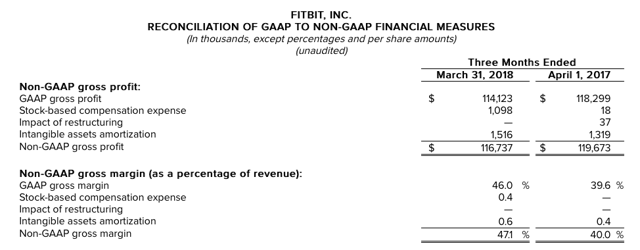 在上一个季度,Fitbit收入下降了5200万美元,毛利润下降幅度几乎相同。毛利率提高710个基点是运营改善的迹象。