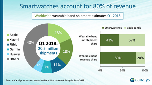 下半年向智能手表的转变对于Fitbit而言也不是那么稳固,因为智能手表市场的竞争对手比其主要类型的健身追踪器更大。市场研究公司Canalys估计,该季度Fitbit在可穿戴设备市场份额为11%,但就智能手表而言,公司远远落后于该领域的领导者——苹果。