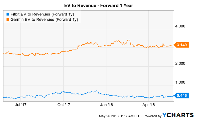 Garmin在可穿戴设备销售方面落后Fitbit,但该股票的EV/S倍数更高。由于其他增长缓慢的业务现金流量强劲,两家公司EV/S倍数相差大约10倍。