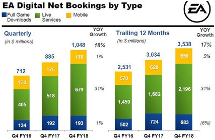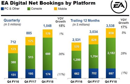 随着世界杯的临近,市场关注公司旗下的《FIFA18》是否能够乘着世界杯的东风来一波大卖。由于《FIFA》系列一直是公司的重要IP之一,对公司收入贡献巨大,因此公司未来的股价走势,与该作品的发售量以及公司后续的持续Live Services将有密切联系。