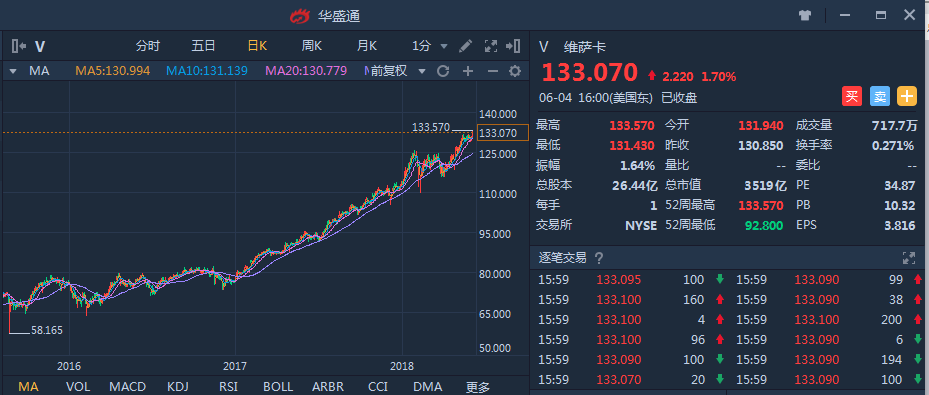 维萨(V.N)是一家连接消费者、商家、银行的支付公司,在过去的几年里,公司在全球建立了庞大的支付帝国,这个帝国里面包含了4400万商家以及22亿消费者。受利于全球数字交易的发展,支付向无纸化时代迈进,公司持续增长,市场前景广阔。