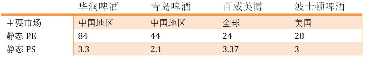 从下表可以看出,从PS的角度,青岛啤酒相对低估;PE的角度,港股啤酒股普遍高于美股市场,美股成熟市场对啤酒股的市盈率介于25-30倍,相比之下,青岛啤酒更为接近。此外,相对国外市场,国内啤酒市场有更大的消费潜力待挖掘,投资机会大于美国及其他海外市场。