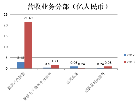 1)健康产品销售(88%):营收21.49亿占比88%,同比增长687%,包括自营B2C药方业务及B2B分销业务。
