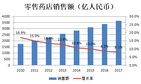 3)药品销售额比例中以处方药占8成,而国内处方药销售以医院等医疗机构渠道为主,零售药店渠道占比较低。随着医药分开实行,处方药市场未来有望开放,其中蕴含巨大的机遇。
