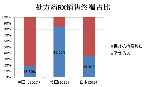 当前处方药占据药品市场近八成份额,近八成处方药都在医院销售。对比日本与欧美的情况,我国零售药店的处方药市场占比较低。这种情况在未来将有望改变,若处方药进一步开放,零售药店及网上药店将有望加速发展。