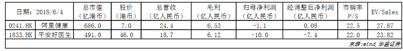 特别需要注意的是,在2018年3月,在民营体检市场占有重要份额的医疗服务公司爱康国宾,接受云锋和阿里巴巴的私有化建议,以每股A类或C类普通股41.20美元或每股ADS股票20.60美元的价格进行私有化。后续爱康国宾存在与阿里健康进行更紧密合作的可能性,直接参与到阿里健康的产业链中。爱康国宾2017财年前三财季盈利5014.4万美元同比增长127.69%;营业收入4.74亿美元,同比增长26.32%,拥有110间自营医疗中心。
