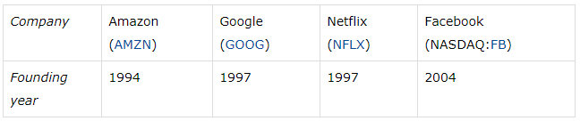 Facebook不仅是科技行业中员工平均年龄最小的公司,同时还是最年轻的公司之一,至少从创立年限来看是如此。在举世闻名的FANG(Facebook、亚马逊、奈飞以及谷歌)中,Facebook显然是最年轻的成员。公司成立于2004年,比谷歌、奈飞晚7年,比亚马逊晚10年。可见Facebook处于企业生命周期的早期增长阶段,未来还有巨大增长空间。