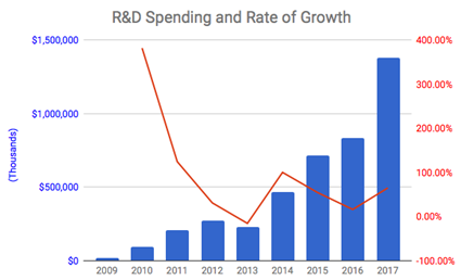 另有空头针对马斯克的管理战略存在质疑,认为公司在费用方面控制不当,尤其是在研发费用方面;并声称特斯拉只是为了满足马斯克的兴趣,并已公司近年研发费用增长为例。