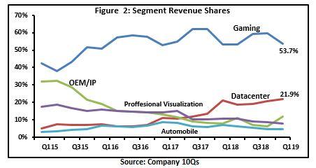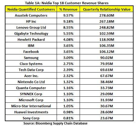 根据彭博的Anand Srinivasan的说法,Nvidia来自这些大公司的数据中心收入可见性可能“限于1-3个季度”,具体取决于购买是用于内部还是外部系统芯片的使用。尽管25%的高性能收入波动性较小,但其Datacenter剩余15%的销售用于桌面虚拟化,该项可能会受PC出货量放缓影响。这些大公司IT预算的周期性可能使Datacenter三位数以上的增长无法持续。数据中心增长率也相应减至70%。