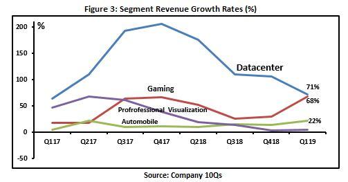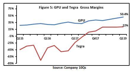 一季度,Nvidia的GPU业务首次占比收入达到86%,同比增长77%,这比Tegra处理器33%的增长率高出很多。因此,Nvidia的短期总增长率可能会出现意想不到的改善。