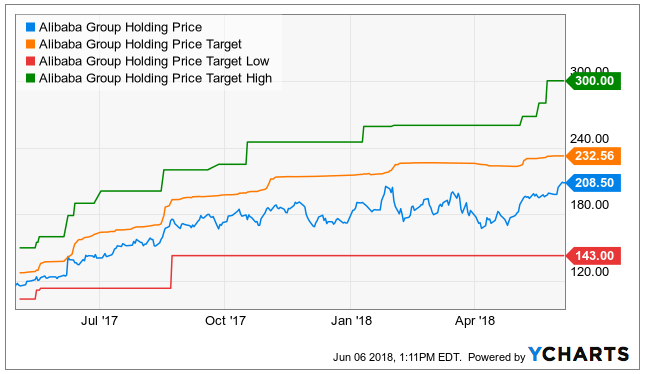 据YCharts数据显示,阿里的最低目标价出现在去年八月,为143美元。阿里目前已经较高的目标价多次被上调。近日,市场分析公司MKM Partners将阿里目标价从260美元上调至280美元,创下当时的阿里目标价新高。之后不久,雷蒙德·杰姆斯公司上调将阿里目标价从250美元上调至300美元,创下新的最高目标价记录。