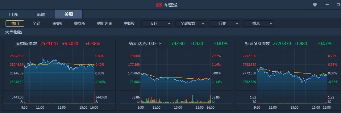 继多日连涨后,周四美股涨跌不一,标普500收跌0.07%报2770.37点,此前连续四个交易日上涨。道指收涨0.38%报25241.41点,此前连涨两天。科技龙头股集体下跌,纳指收跌0.70%报7635.07点,此前连续三天创收盘新高。
