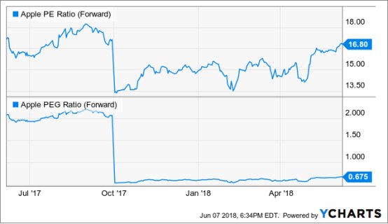设备销售市场还未饱和,并且苹果坚持给股东发放现金,这已经足够支撑投资者对于苹果的投资信心了。而且,服务收入的快速增长将是苹果在本十年结束时盈利增长的最终驱动力。因此,目前苹果的PE倍数(见上图)非常具有吸引力。