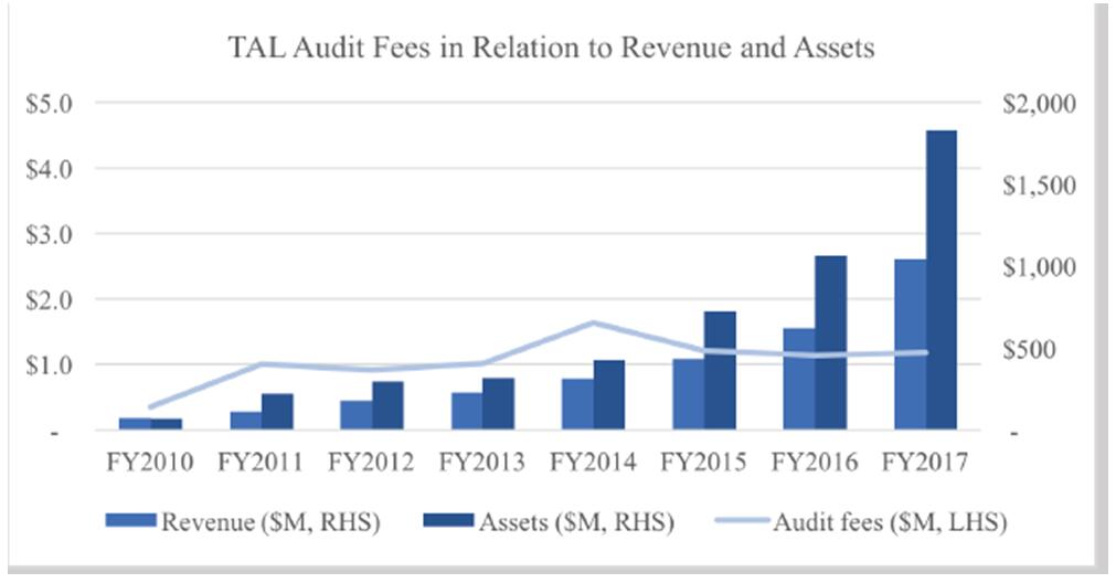 在解释其做空报告的短视频中,浑水频频提到中国企业的审计作假问题,并称作假概率远高于美国。好未来的审计事务所是德勤,从历年公司的审计花费可以看出,从2011财年开始,公司花在审计上的开销复合增长率只有2.8%,而同期营收和总资产的复合增速是45.4%和42.6%,没有与公司业绩保持同步增长。
