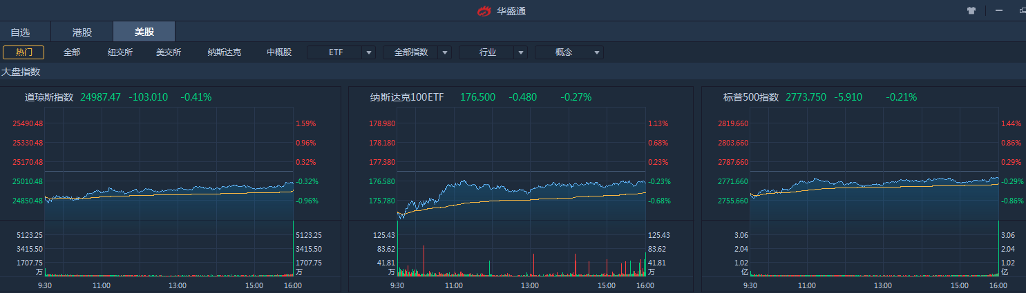 受贸易战局势影响,周一美股全线低开,截至收盘道指收跌102点,连续五个交易日下挫,标普收跌0.21%,纳指收跌0.27%。