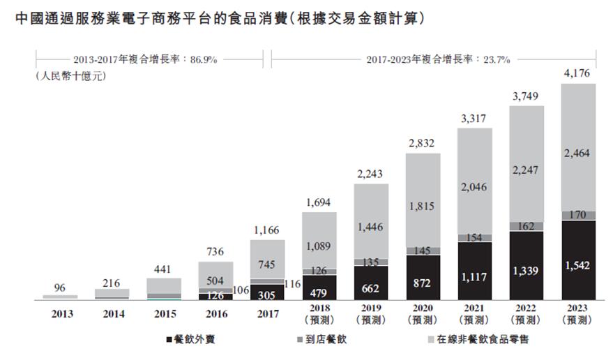 其中,餐饮外卖有望实现31%的复合增长率,在线非餐饮食品零售有望实现22%的年复合增长。