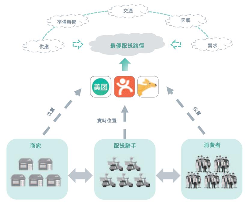 公司建立并运营着世界上规模最大的同城即时配送网络。通过大数据、人工智能、云计算等技术方式,公司自行研发出一套实时智能调度系统。该系统能实时跟踪每位配送员的位置,并根据配送员、商家及消费者的位置计算出最优配送路线。2017年,该系统平均每单配送时间为30分钟,日常高峰时间每小时执行29亿次路径规划算法,能在平均55.2毫秒内计算出97%的最有配送路线。通过实时智能调度,可以提高用户体验,同时增加配送效率,配送员的日均配送数量由2016年的21增加到2017年的26。