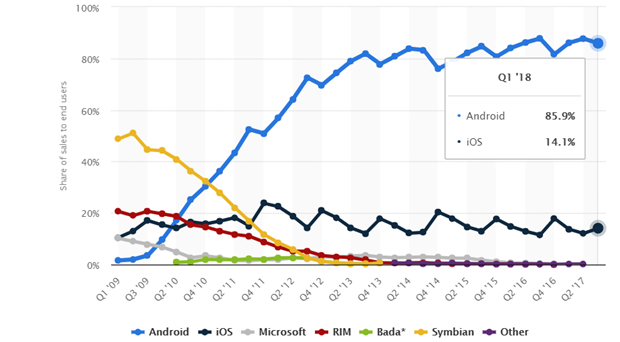 未来几年中,技术领域面临三大变化:AI(人工智能)、IOT(物联网)以及另一半加入互联网的人口。从苹果(NASDAQ: AAPL)和谷歌(NASDAQ: GOOG)目前的发展来看,似乎很难发现苹果能在未来五年走在前列的趋势。无可否认,苹果是一家好公司。公司拥有卓越的品牌,设计出色的产品,并且与消费者建立了良好的关系。尽管如此,笔者认为苹果的创新和增长前景较为有限。相比之下,谷歌不仅有更大更好的护城河,还有能力渗透苹果的大部分优势。