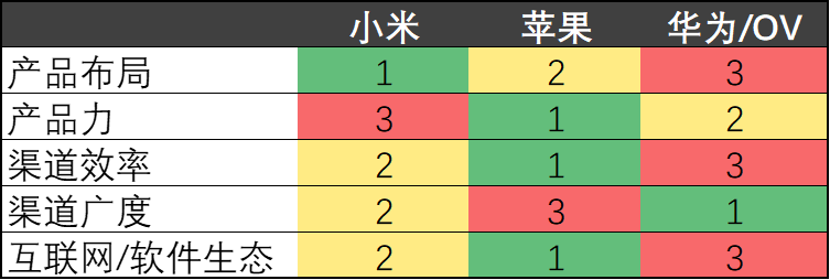 可以看出,小米和苹果都在产品布局、渠道效率、互联网/软件生态较竞争对手更具优势,而背后反映的是苹果、小米在格局上的领先(苹果的软件生态和小米的物联网生态)。所以,小米是有机会成为一家苹果级的公司的。