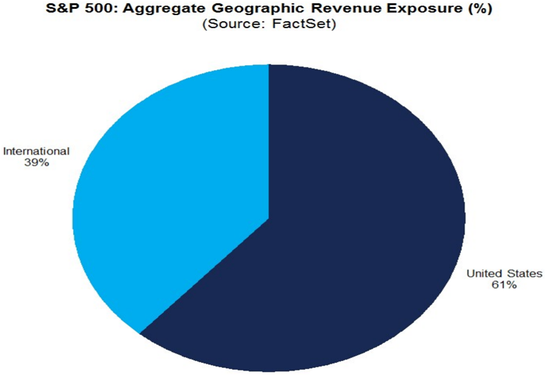 但是,关税的贸易摩擦确实会影响相关企业,通过下图可以看出,标普500的企业营收里有39%来自海外,因此,投资者需要认清,关税及贸易战的恶化势必会影响相关企业的盈利。