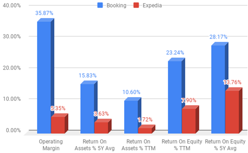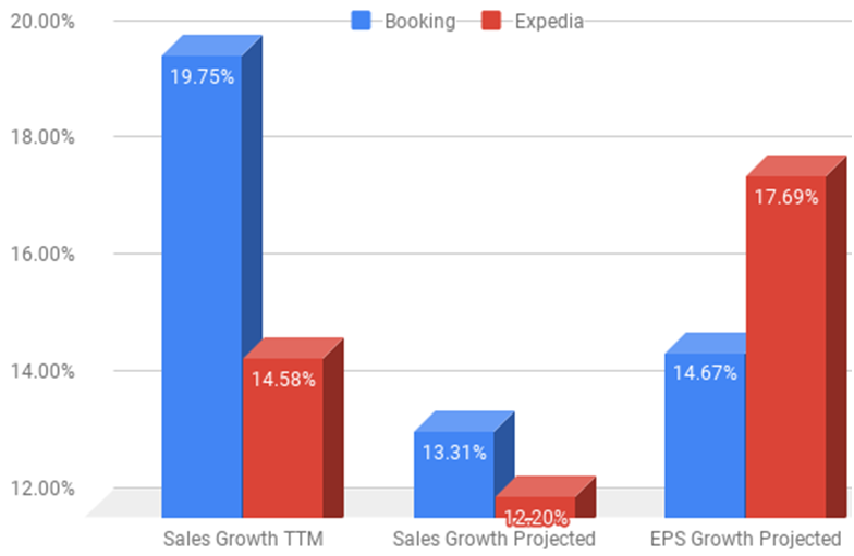由于Booking在全球化方面做得远超过Expedia,因此,华尔街的分析师认为公司业务在接下来几年增长会超过Expedia,然而Expedia的收益则超过Booking。