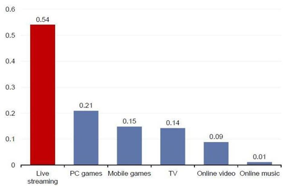 下图显示了公司直播业务的重要性以及占主导地位的优势。