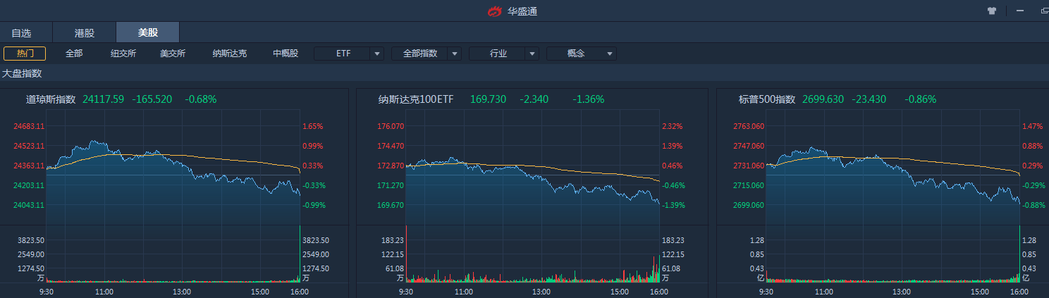 因特朗普投资政策立场软化,周三美股早盘上涨,后因总统首席经济顾问Kudlow强硬讲话而转跌,最终道指收跌0.67%,标普收跌0.86%,纳指跌超1.5%,科技股和金融股领跌,而能源股领涨。
