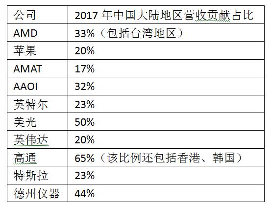 如果真的管制出口,对科技公司影响很大,以下是笔者根据公开资料整理的部分科技公司对中国区的业务敞口。