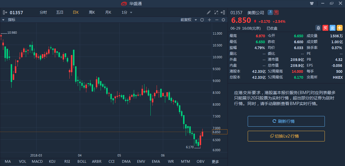 资料来源:华盛证券,美图公司已破8.5元招股价,跌幅为25%
