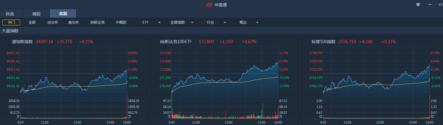 受全球贸易摩擦影响,美股周四低开反弹,最终三大指数收涨,科技股表现突出。标普500收涨0.31%,道琼斯收涨0.15%,纳斯达克收涨0.76%。