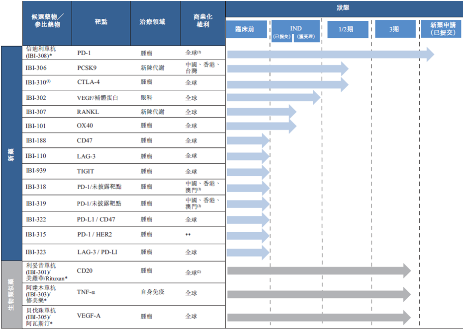 目前4种在中国进入后期临床开发阶段,包括信迪利单抗PD-1抗体、贝伐珠单抗生物类似药IBI-305、利妥昔单抗生物类似药IBI-304和阿达木单抗生物类似药IBI-303;按照公司研发进度,每年都有新药进行临床及申报,种类涵盖创新药和生物类似药,有效弥补创新药研发周期长、困难高的风险。