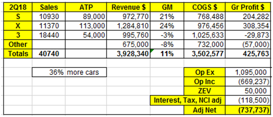 第二季度特斯拉没有推迟Model S和Model X(毛利率达到25%以上)的销售业绩释放,反而是Model 3(毛利率仅有15%)的销售被积压,约40万的订单等待后期释放;2018年3月,所有 Model 3标准版的交付都被延期至2019年了。