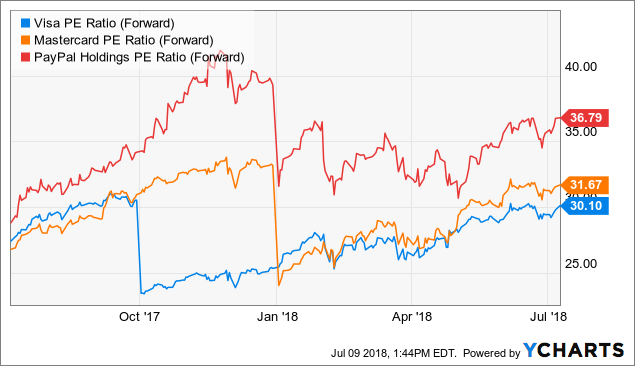 VISA与主要竞争对手的的远期P/E走势见下图: