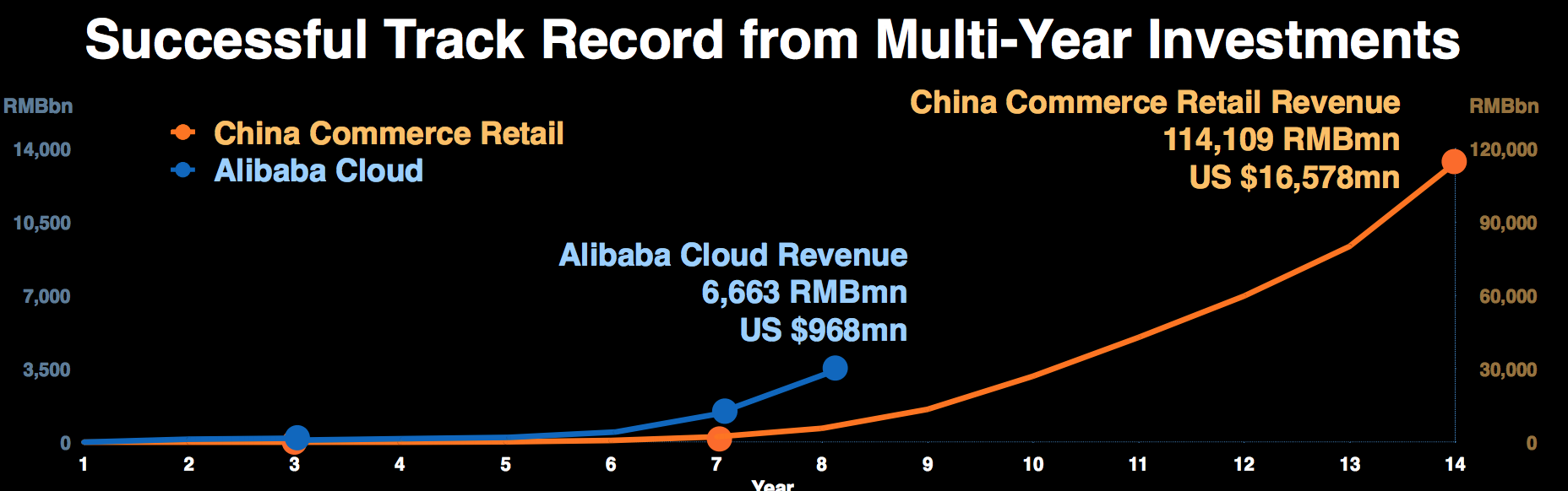 阿里巴巴是中国经济增长催生的龙头公司,在业务和规模扩张的驱动下,未来具有无限增长的潜力。未来,阿里巴巴将会在金融服务、信息技术、零售等多重领域上发展扩张,未必不会成为亚马逊这样的集团巨头。