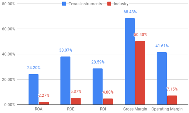 公司以开发、制造、销售半导体和计算机技术闻名于世,主要从事数字信号处理与模拟电路方面的研究、制造和销售。所处市场环境具有高度差异化的特点,规模效应明显,公司的产品销售远超过同行,其收入是其竞争者的2-5倍;产品周期相对较长,为公司提供了稳定的长期收入来源及相对较高的投资回报率。