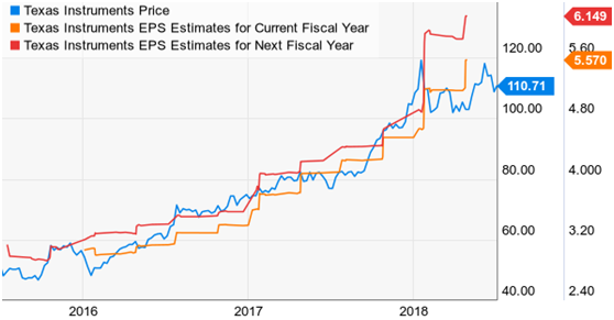德州仪器是全球著名的半导体设计与制造公司,其股价在去年的涨幅接近50%,而进入18年之后,其股价涨幅也达到10%。昨晚公司股票再次上涨3.65%,股价接近历史新高,达到115.84美元。