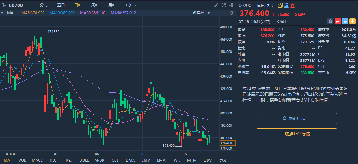 截至北京时间7月18日14时31分,腾讯(00700)股价上涨0.16%,达到376.400港元每股。对其主要业务进行分析之后,我们不难发现腾讯的投资前景较为可观。以下是具体分析: