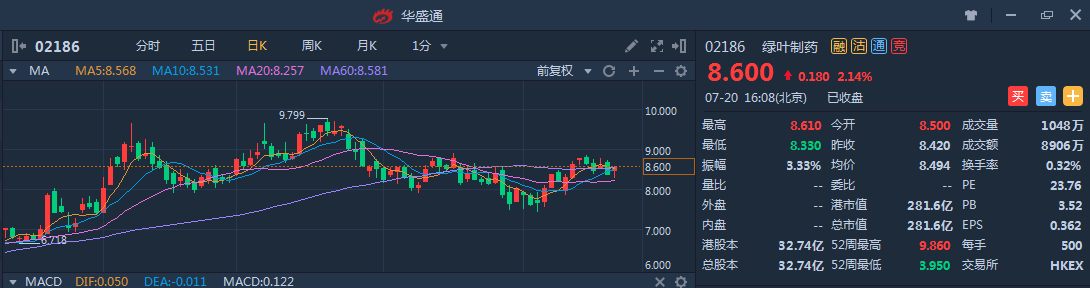 集团拥有相关医学和制药的硕博研发团队,在国内取得252项专利,当中有52项仍在申请阶段。另有27个研发产品仍在不同开发过程中。包括有11个肿瘤科产品,5个心血管和新陈代谢产品及11个中枢神经系统产品。同时在海外取得416项专利,当中有114项仍在申请过程中。可于现价8.60元附近吸纳,中长线可见11.80元,跌穿7.30元止蚀。