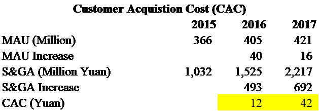 例如爱奇艺,其用户获取成本从2016年的12元,到2017年增长为42元,涨幅近3倍。