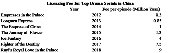 在过去的6年里,中国顶级电视剧的播放许可费用增长明显,如下图所示,从2012年的《甄嬛传》到2018年的《如懿传》其播放许可费增加了30倍。