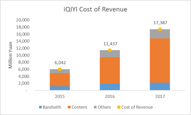 而从爱奇艺的财报可以看出,随着内容成本本身的增长,在总成本中所占的比重也越来越大。