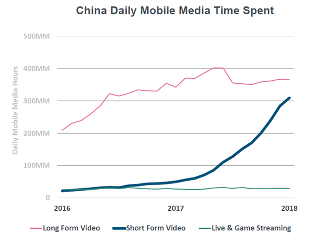 2016-2018年,用户在视频APP上花费的时间以每年65%的速度增长,增速高于使用社交APP的时间。值得注意的是,从2017年以来,视频播放的增长主要来自于抖音、快手等短视频平台,短短两年,使用时间增长了三倍。